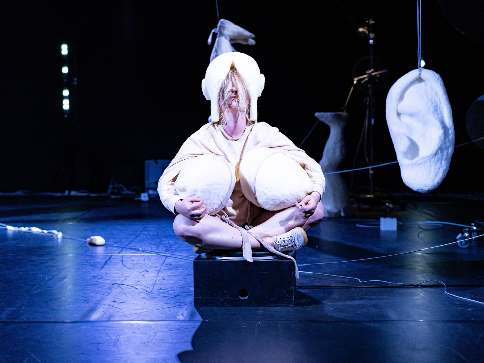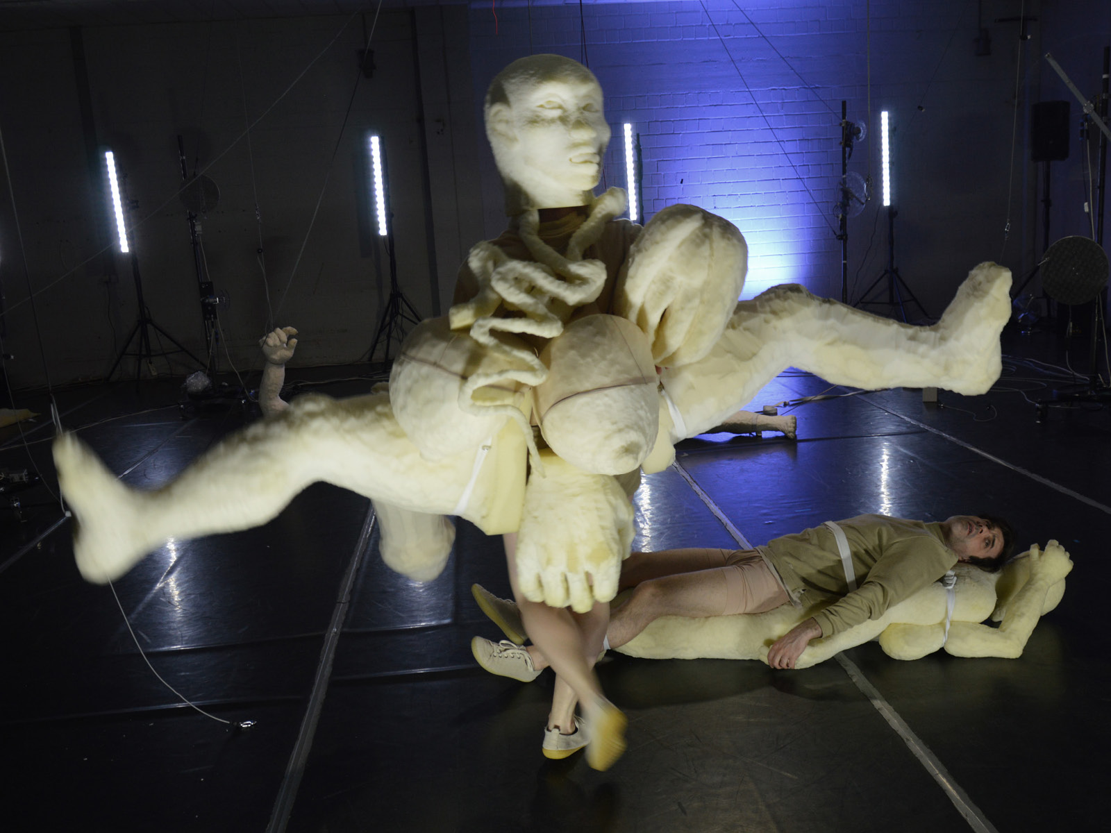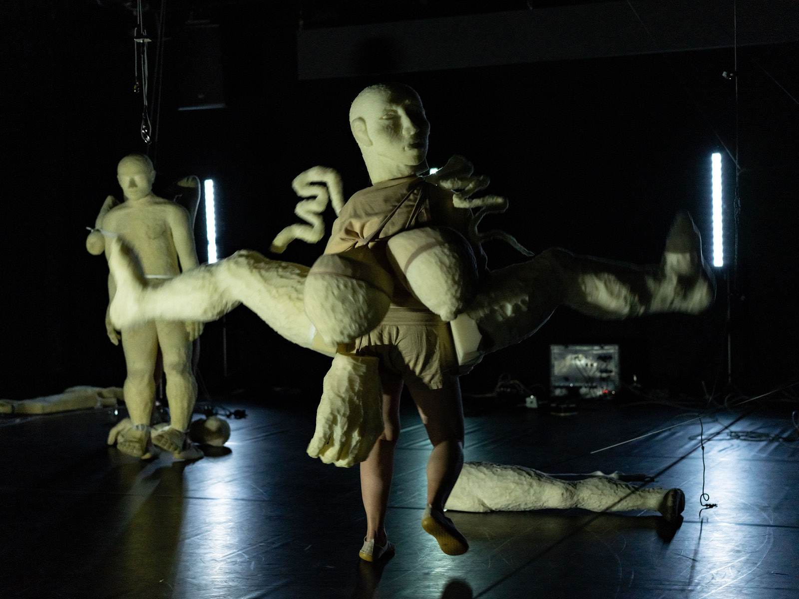 »WETWARE« is mechanical dance theatre or musical puppet theatre. »WETWARE« encompasses a poetic approach to the emotional life of the techno-self – it plays with opposites and dependencies between love and death, the precision of machines and the feeling of humans. Inspired by Paul B. Preciado’s auto-experimental book »Testo Junkie«, the puppet theatre performance put on by O-Team explores the malleability of body and self within the context of technology, drugs, sex and biopolitics. In the same way as a long-form poem, it describes the reinvention of nature, electro-cellular circuits, intimate desires, chemical reactions and the technology of the soul.